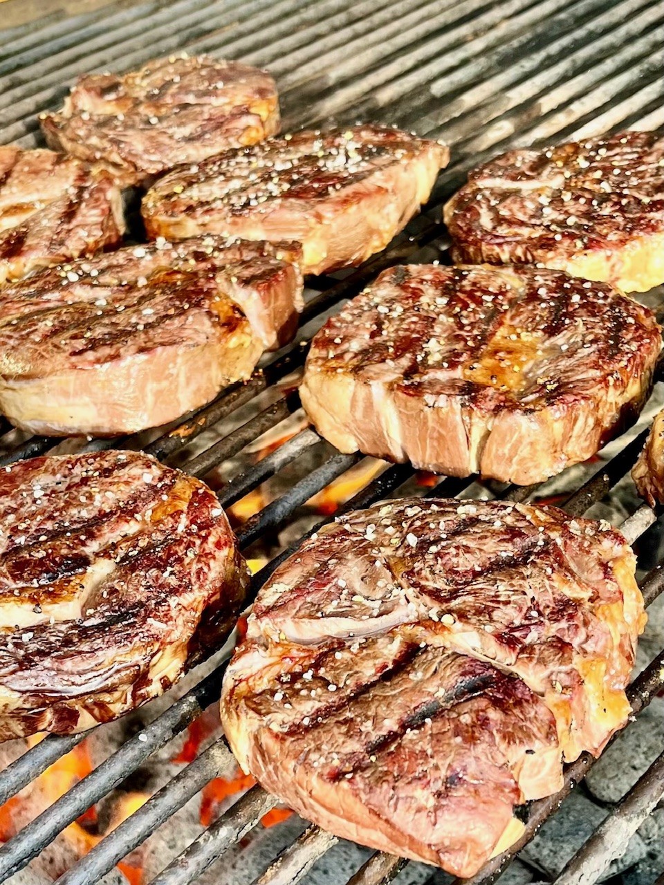 300 gram grillet Rib-Eye steak med grove fritter og sauce bearnaise, grønne ærter, salat, brød og smør. I stedet for grove fritter kan der vælges råstegte kartofler vendt i årstidens urter. PRIS PER PERSON (min. 12 personer) 295,- kr.