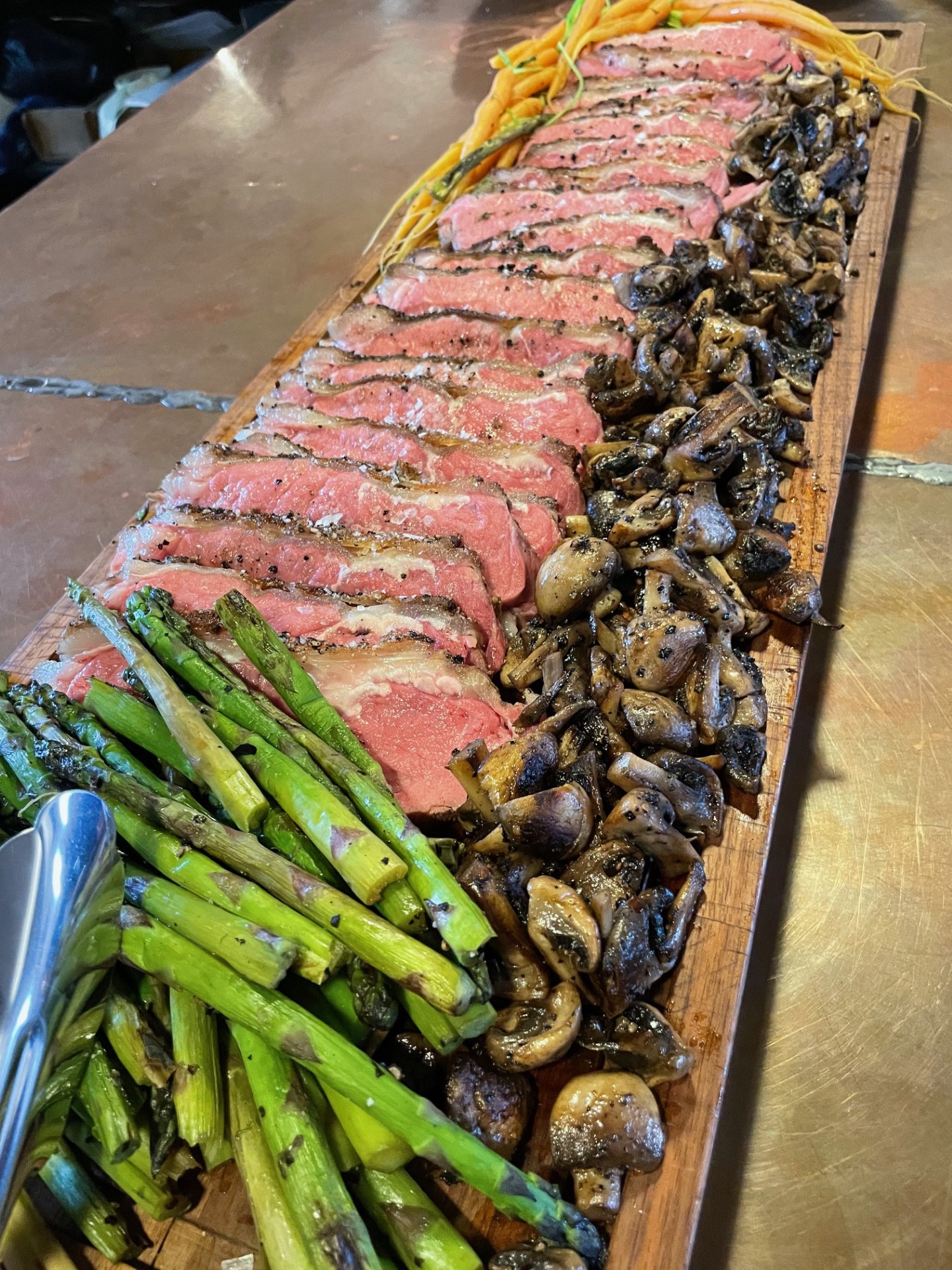 Langtidsstegt mør kalvefilet med råstegte kartofler, pebersauce (eller bearnaise), salat samt brød og smør. I stedet for råstegte kartofler kan der vælges grove fritter. PRIS PER PERSON (min. 12 personer) 295,- kr.